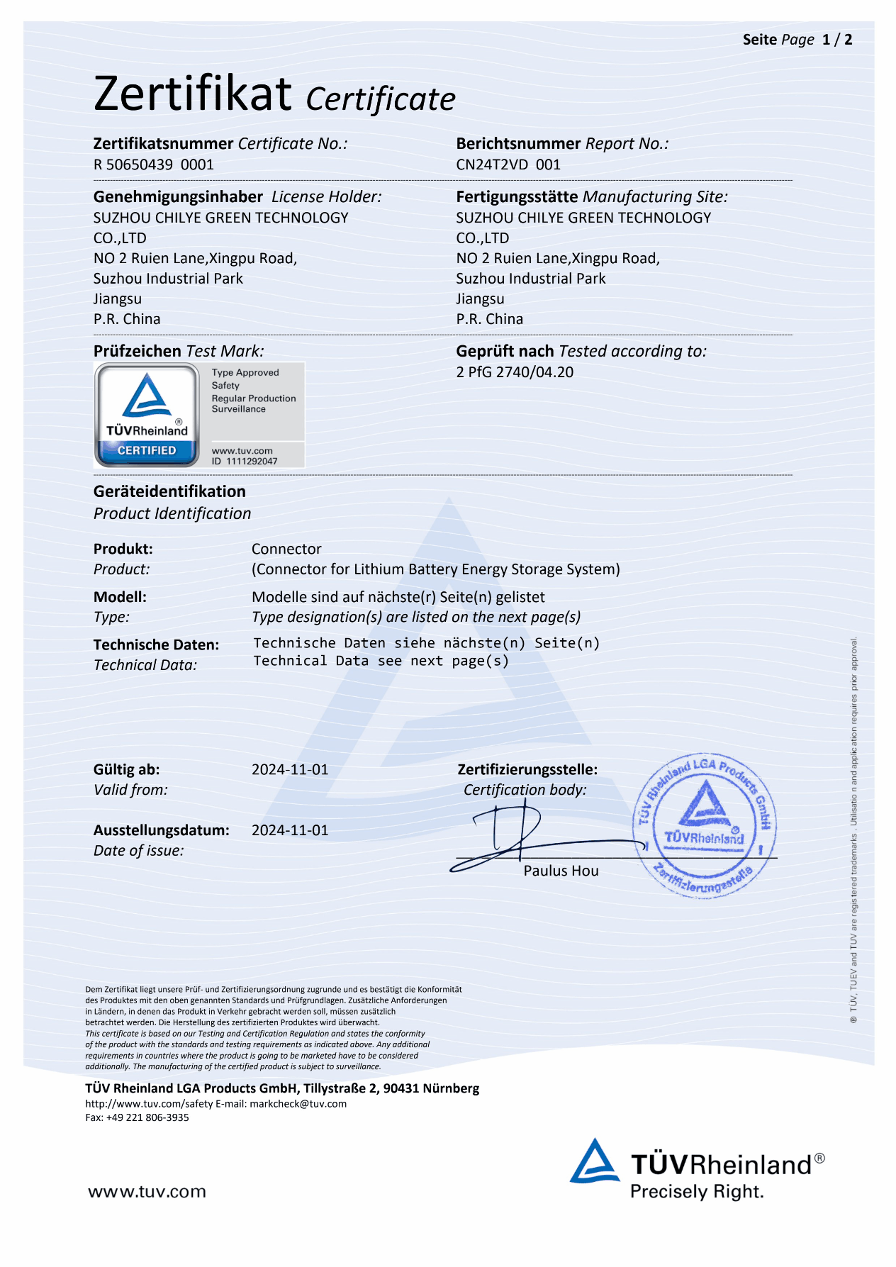 近日,智綠科技自主研發的儲能連接器HVS系列順利通過CE認證,標志著智綠科技在產品結構,軟、硬件開發,實驗檢測能力及人員管理等方面獲得權威機構的認可,為海外產品的研發和質量保證提供了強有力的支撐。